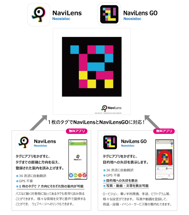 1つのタグで「NaviLens」と「NaviLens GO」に対応!
